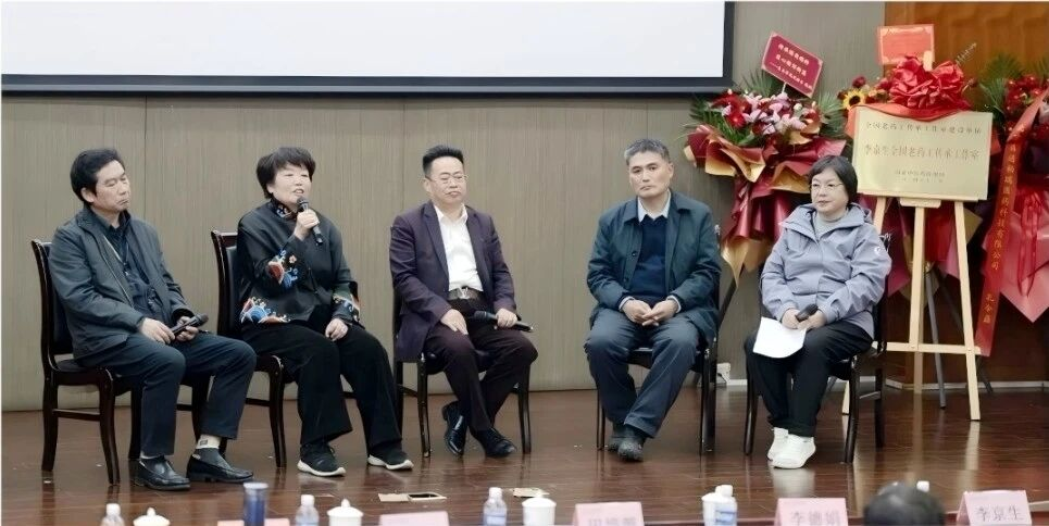 During the unveiling ceremony, Li Dejuan and Tian Peiyuan jointly unveiled the plaque of "Li Jingsheng National Senior Pharmacist Inheritance Studio". Subsequently, a flag-giving ceremony for the teacher-apprenticeship class was held, where Professor Li Jingsheng presented the flag to student representatives, symbolizing the intergenerational inheritance of TCM skills. Distinguished guests presented flowers to Professor Li Jingsheng, and many enterprises and medical institutions also sent flowers to express their high respect for the older generation of TCM practitioners.