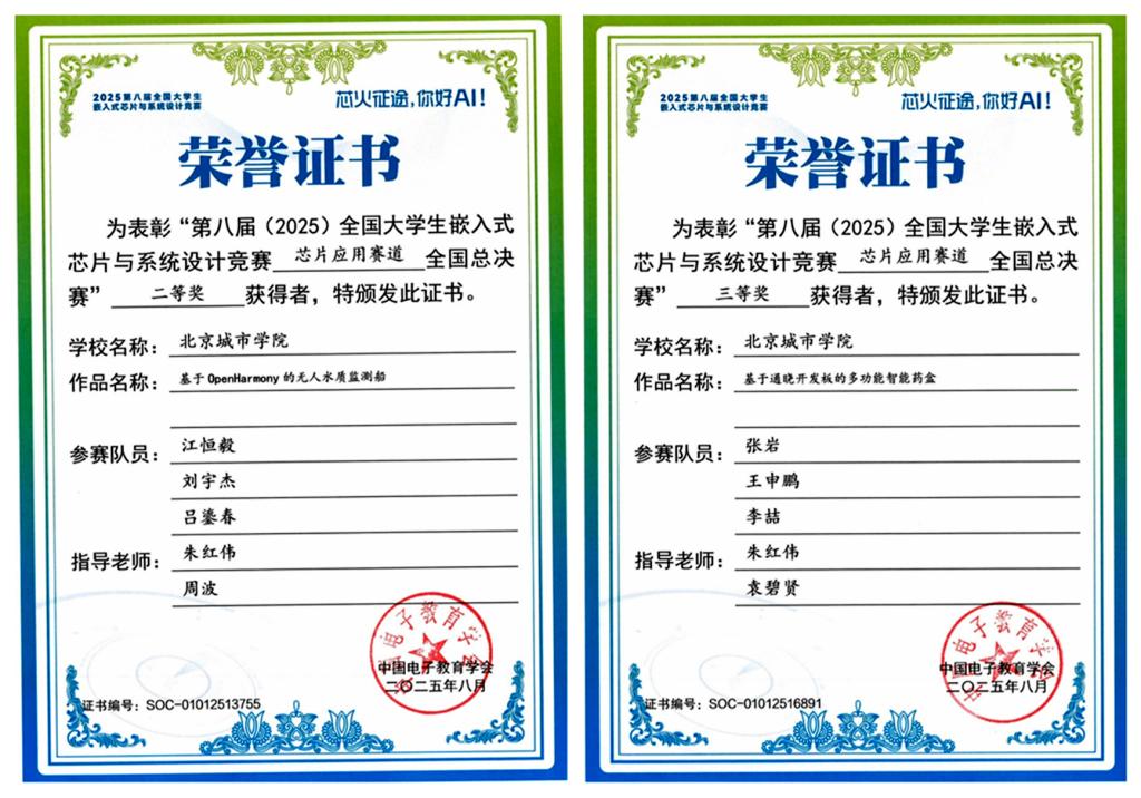 The 8th National College Student Embedded Chip and System Design Competition recently concluded successfully. A team from the School of Information Technology at Beijing City University demonstrated solid professional competence and outstanding innovative design capabilities throughout the intense competition, which included online evaluations, Northern Division preliminaries, and the national finals, ultimately achieving multiple excellent awards. In the Northern Division preliminaries, four BCU teams performed exceptionally, winning two First Prizes (advancing to the national finals) and two Third Prizes.