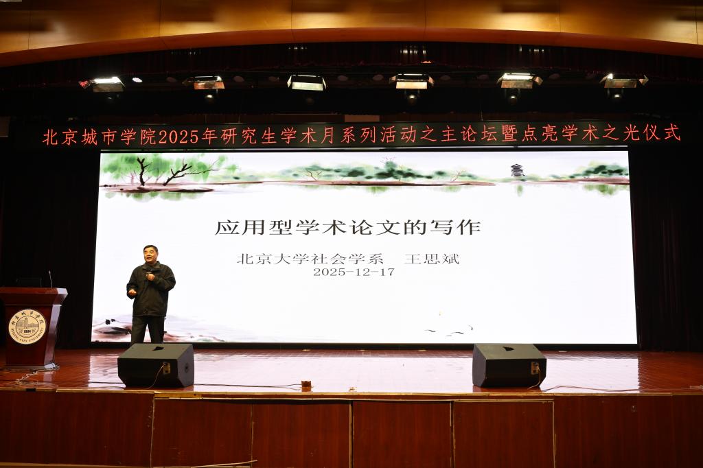 On December 17, 2025, the Main Forum and Academic Light Lighting Ceremony of Beijing City University’s (BCU) 2025 Graduate Academic Month was grandly inaugurated at the Hangtiancheng Campus. The event was hosted by BCU’s Graduate Department, co-organized by various Graduate Education Development Centers, and supported by the editorial office of the Journal of Beijing City University.