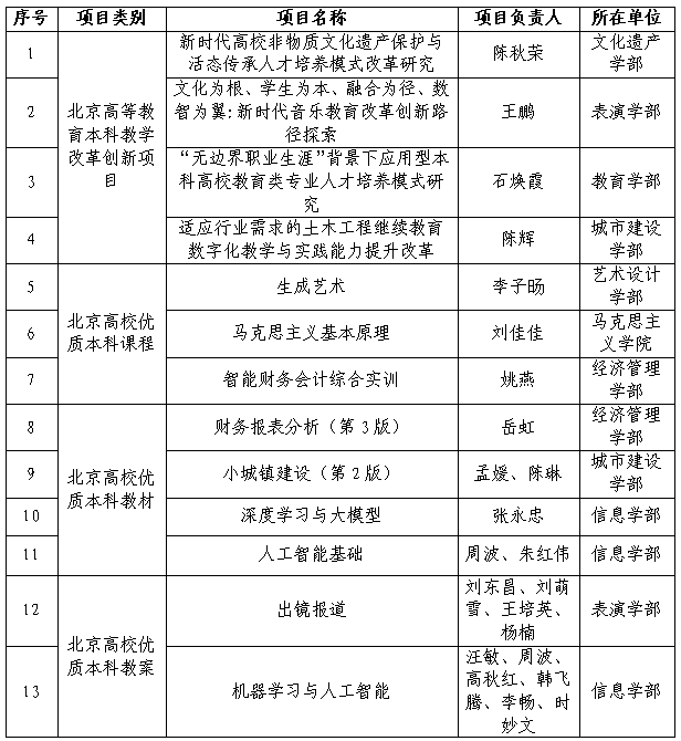 Recently, the Beijing Municipal Education Commission announced the selection results for the 2025 Beijing Higher Education Undergraduate Teaching Project Construction. Beijing City University (BCU) had a total of 23 projects selected. Among them, there are 4 undergraduate teaching reform and innovation projects (including 1 in continuing education), 3 high-quality undergraduate courses, 4 high-quality undergraduate textbooks (including 1 key project and 1 in continuing education), 3 high-quality undergraduate lesson plans, 4 high-quality undergraduate courseware (including 1 in continuing education), 1 excellent teaching laboratory, and 4 outstanding teaching innovation demonstration cases.
