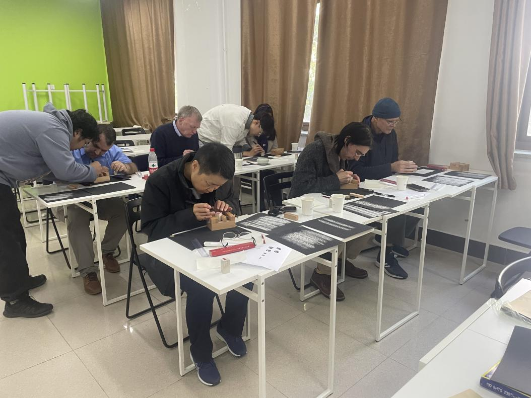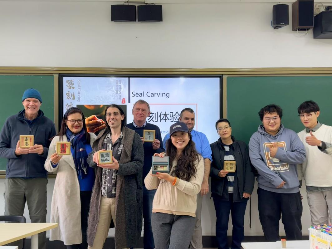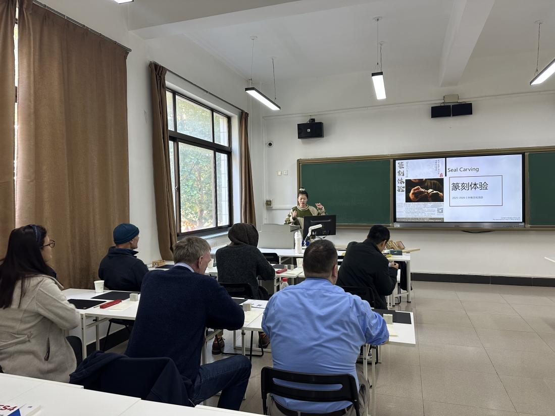 On October 20, 2025, the International Affairs Office successfully hosted a seal carving cultural experience event titled "Art within a Tiny Space" for international faculty members. The activity attracted enthusiastic participation from our international teachers hailing from the United Kingdom, United States, France, Germany, Japan, and Cuba. Through knowledge-based lectures and professional guidance, all participants engaged in hands-on practice, immersing themselves in the unique charm of traditional Chinese seal art.